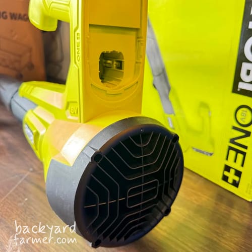 The blower’s housing is made from impact-resistant polymer, giving it a robust yet lightweight feel. The casing holds firm even in turbo mode, and all parts fit neatly with no rattles or looseness. The nozzle and air intake connect securely using Ryobi’s twist-lock system, ensuring a consistent seal and reliable airflow.