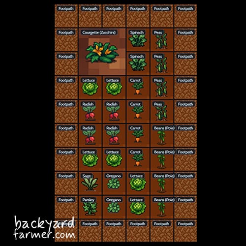 - Bulk producers: Courgettes (1 per 2 squares) or chard