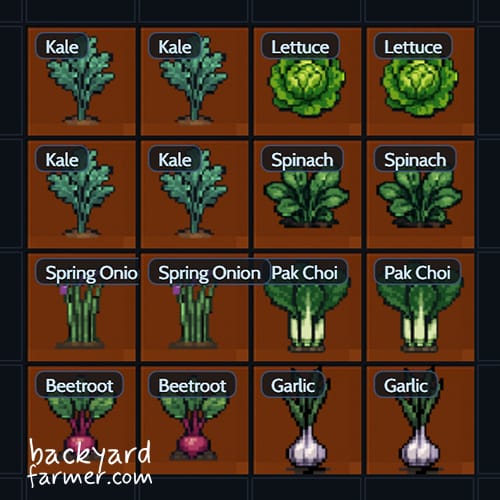 Why it works: These crops grow fast, reset quickly, and give you reliable harvests all season.