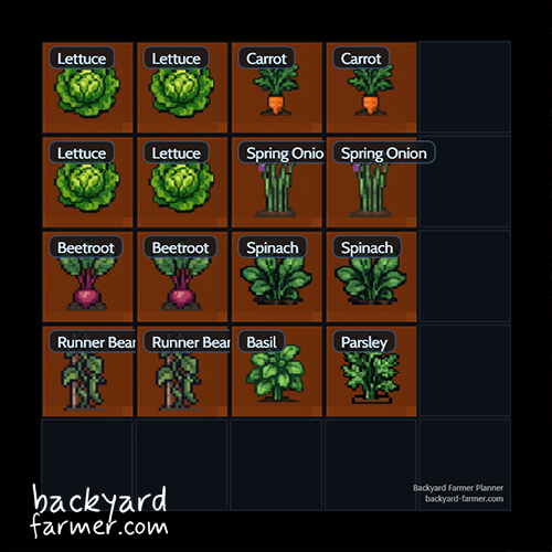 Load this plan: Copy this layout straight into the Square Foot Planner UK and tweak it for your garden. (coming soon)