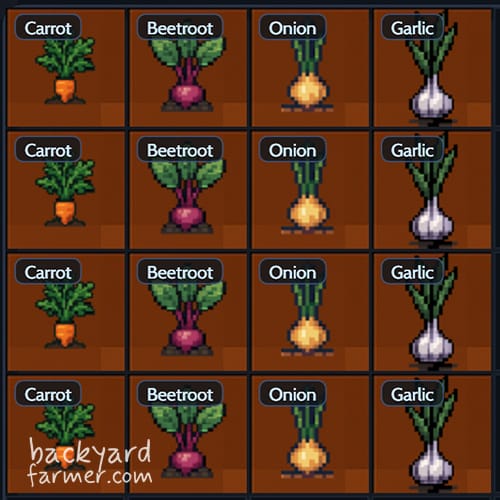 - Onions & garlic – compact, reliable, and ideal for winter storage.